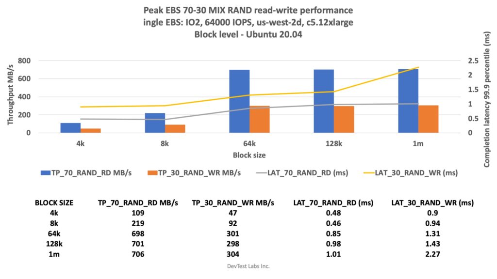 - Treat this as our review of single EBS volume performance with above configuration. Note that there is a throughput limit of 1000 MB/s on single EBS volume, we could not push more than this. At least we verified if we can hit promised throughput per EBS volume.