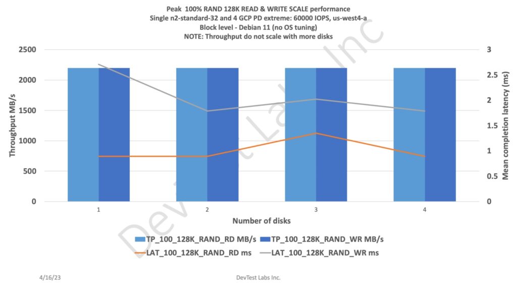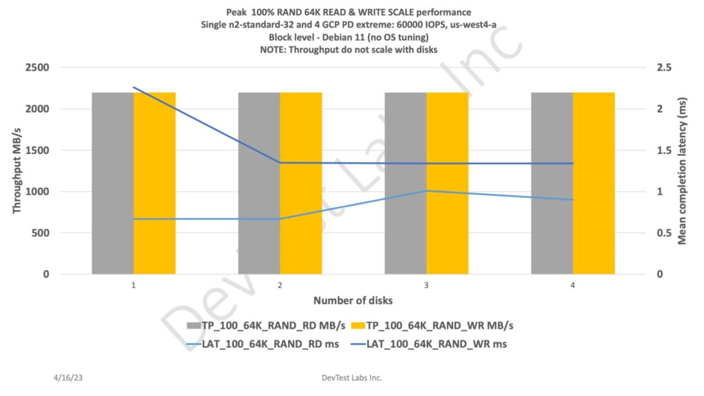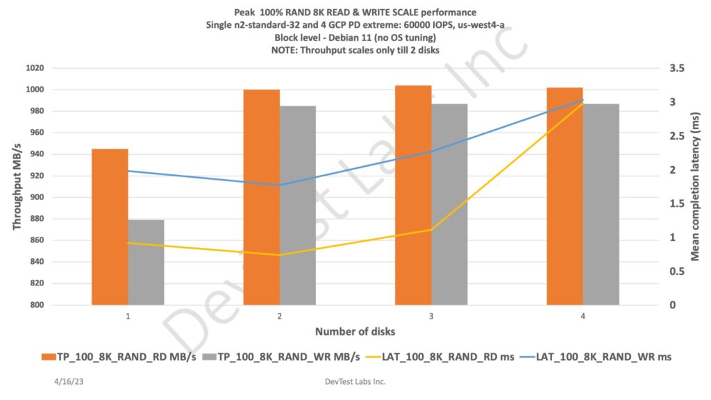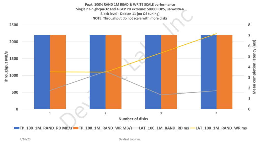 - Note that there is a throughput limit per instance(depends on type) and per extreme PD (depends on size). Still we thought of giving it a try to see how it scales/performs with smaller block sizes and effects on latencies. This can help someone who want to use multiple disks on single instance.