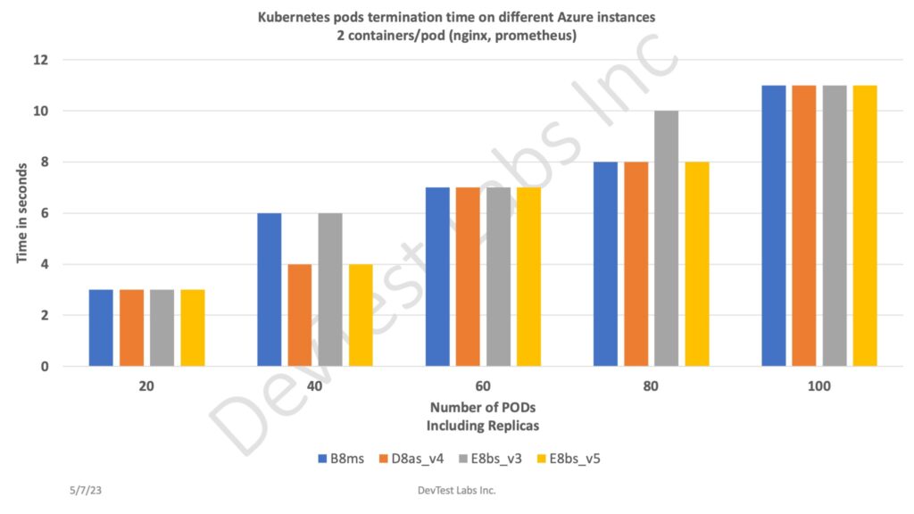 Kubernetes pods bring up/terminate time measurement experiment with few Azure instances